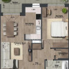living spațios cu zonă de dining și acces pe terasă