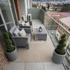 La acestea se adaugă o terasă generoasă, cu ieșire din bucătărie și living, ce oferă o panoramă frumoasă asupra orașului, pe orientare estică.