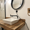 Dotări; mobilier actual, fabricat pe comandă, mașină de spalat vase, frigider si congelator incorporate in mobilier.