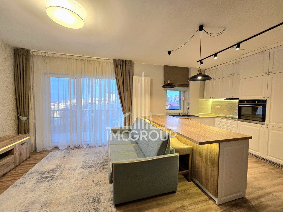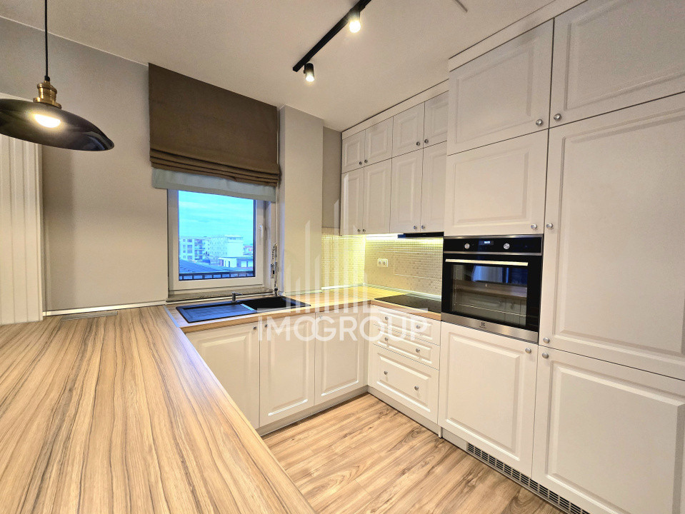 Apartamentul este finisat cu materiale de înaltă calitate, complet mobilat și utilat: mașină de spălat și uscător de rufe, mașină de spălat vase, electrocasnice moderne, mobilier personalizat și de bun gust.