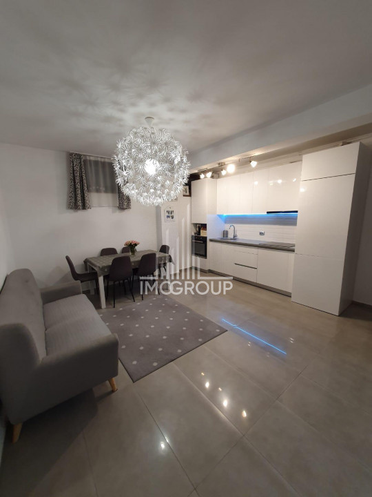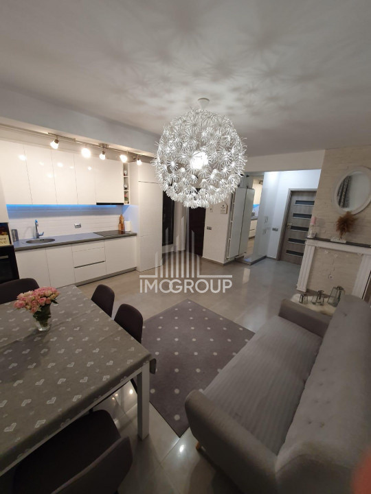 Living cu Bucătărie: Un spațiu deschis și modern, perfect pentru petrecerea timpului în familie și pentru socializare. Bucătăria este echipată cu aparatură de ultimă generație, facilitând gătitul zilnic.