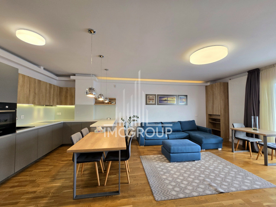 Mobilat modern & utilat integral: frigider, mașină de spălat vase, cuptor + plită electrică, hotă, mașină de spălat rufe cu uscător, TV, aer condiționat inverter
