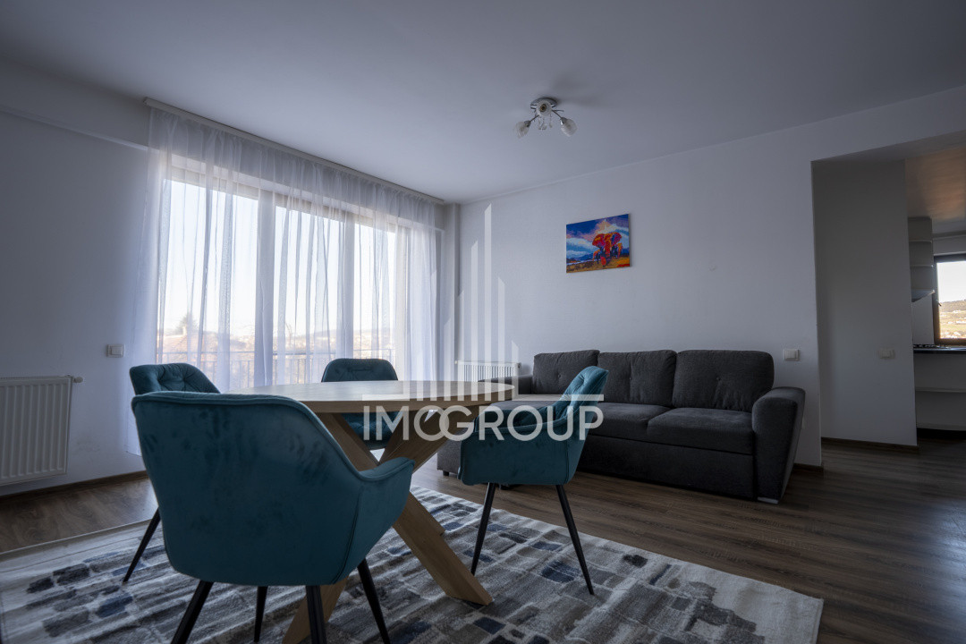 living spațios cu bucătărie open-space și ieșire pe balcon;