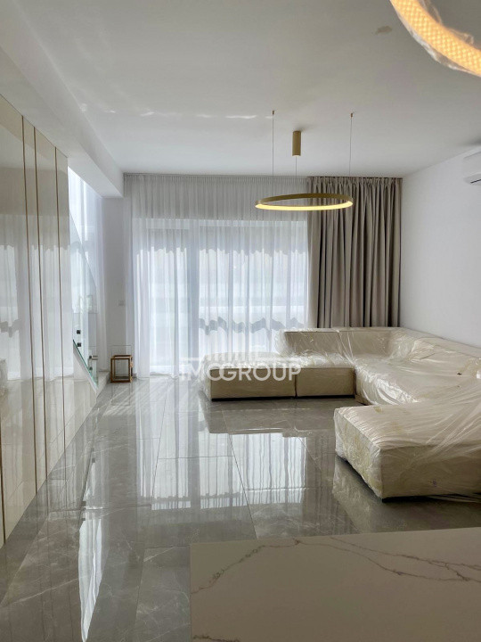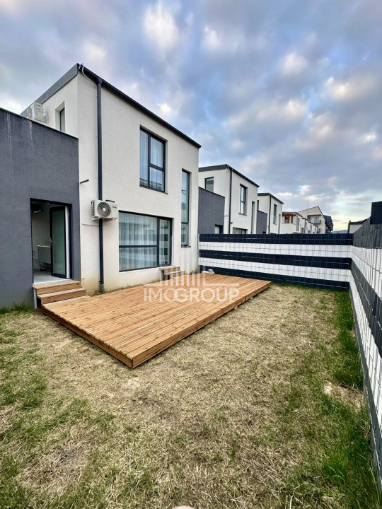 La etaj 1: 2 dormitoare, 1 baie, 1 birou care se poate transforma în dormitor la cerere, terasa de 30 mp.