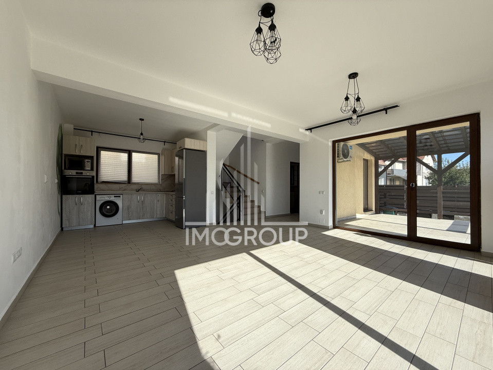 Parter: living cu bucătărie open space, spațiu de depozitare, baie și terasă mare.